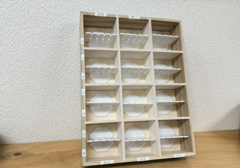 こちらが、実際に私たちが現場で使用している OURオリジナル服薬ボックス です。