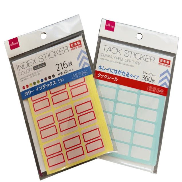 (写真:DAISO INDEX STICKER、TACK STICKER (100円))