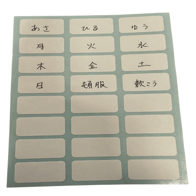 また、必要に応じて【朝・昼・夕・眠前など】のシールや、「飲んだよチェック欄」なども追加できるので、