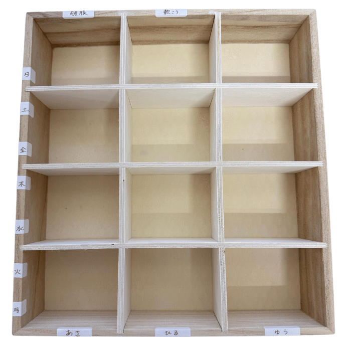 それぞれのマスの仕切りに、時間帯・曜日などのラベルを貼ります。