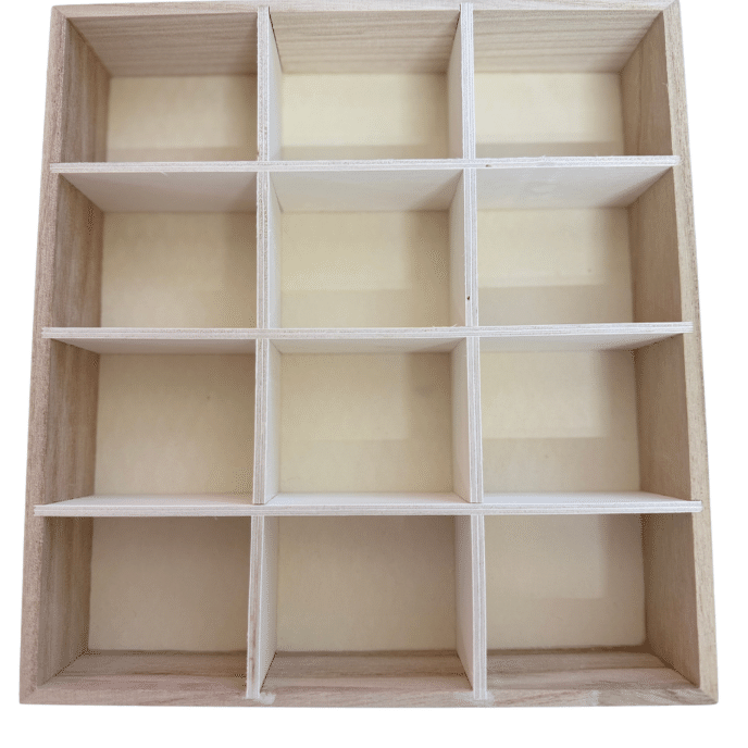 まずは、小分けできるケース(今回は縦4マス×横3マス)を準備します。