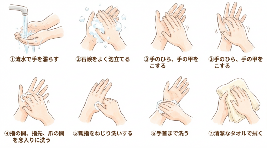 - 手洗いの徹底