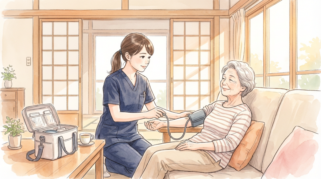 訪問看護師の一日は、複数の利用者様のお宅を訪問し、それぞれに適したケアを提供する充実した時間です。医療処置だけでなく、利用者様やご家族との対話を通じて、在宅療養生活を総合的に支えています。