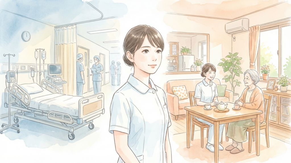 病棟から在宅へ ― “あなたらしさ”を支える看護を求めて 2026.03.20病棟看護、コロナ病棟、退院支援の経験を経て訪問看護へ。チーフとしての役割や子育てとの両立、在宅で「その人らしい生活」を支える看護のやりがいをインタビューでお届けします。
