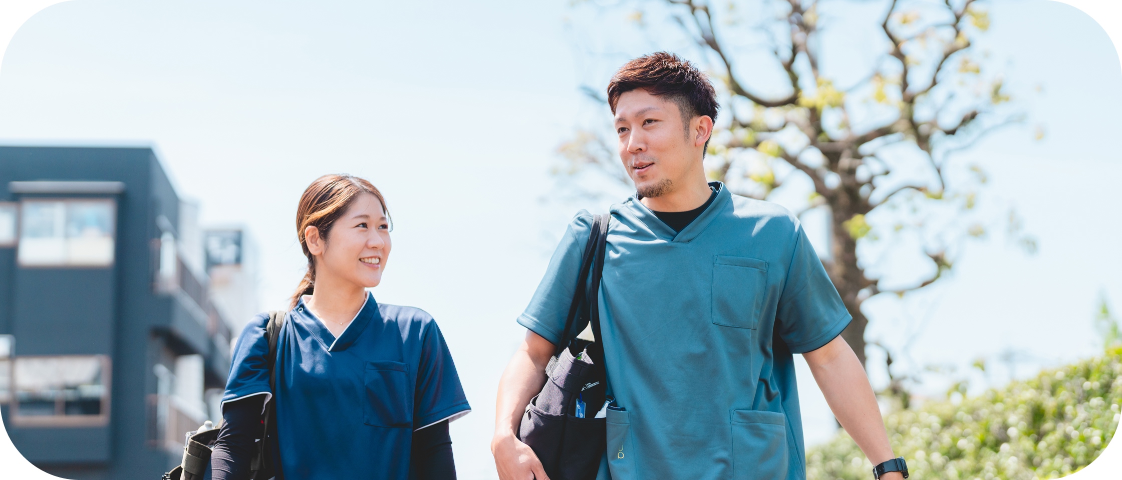 OURの職場体験の最大の特長は、「なりたい自分」に一番近いスタッフと行動を共にできることです。事前に、あなたが思い描く理想の医療専門職像をヒアリングし、社内スタッフの中から最も近いビジョンを持つ人物をマッチング。当日はそのスタッフに同行して、一日の仕事や振る舞い、ケアへの姿勢を間近で体感していただきます。自分が目指す将来像に似た人の“リアルな仕事”に触れることで、自身のビジョンがより具体的に、そして解像度高く描けるようになるはずです。職場体験は、OURというチームを知っていただくだけでなく、「自分らしい働き方」や「専門職としてのこれから」を考える貴重な機会になると考えています。